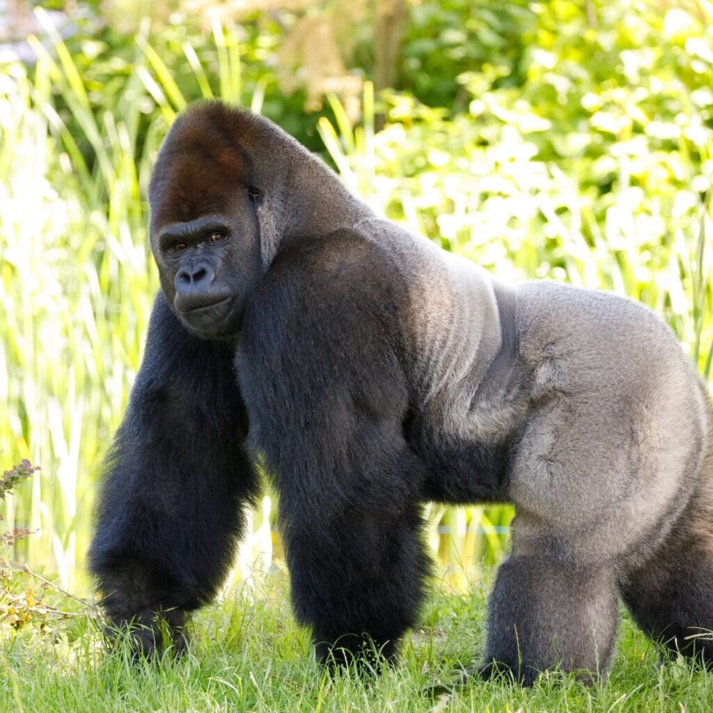 A very large apelike primate with black fur, native to the forests of central Africa.