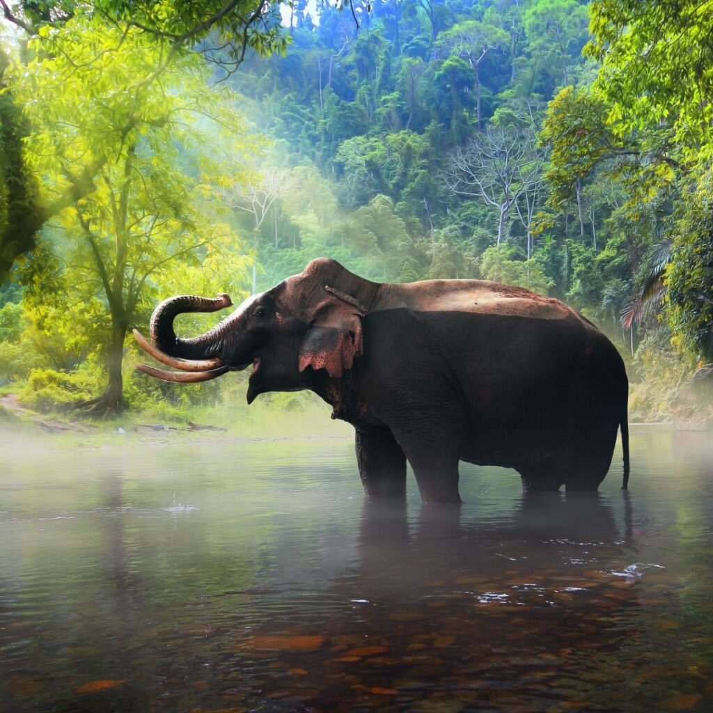 A large mammal with a trunk and tusks, native to Africa and Asia, known for its large ears (African elephants) and smaller ears (Asian elephants).
