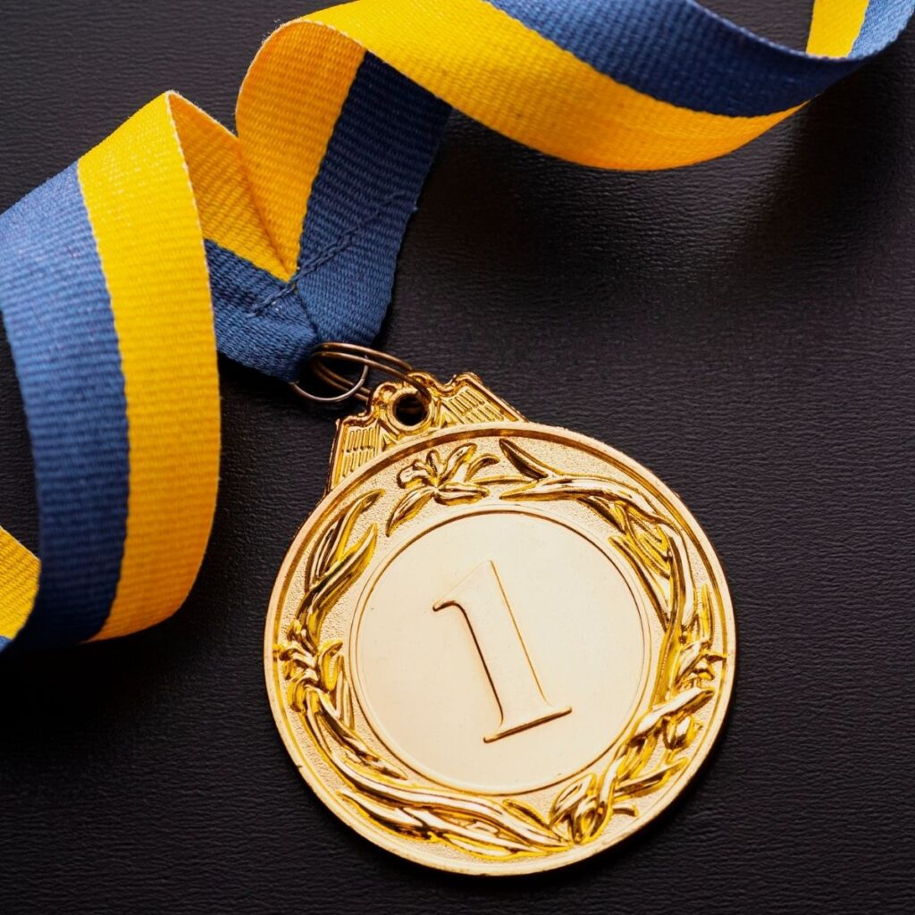 A metal disc awarded as a prize or distinction in a contest or event.