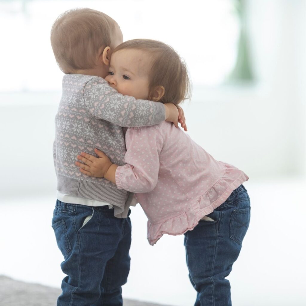 To squeeze someone tightly in one’s arms, typically to express affection.